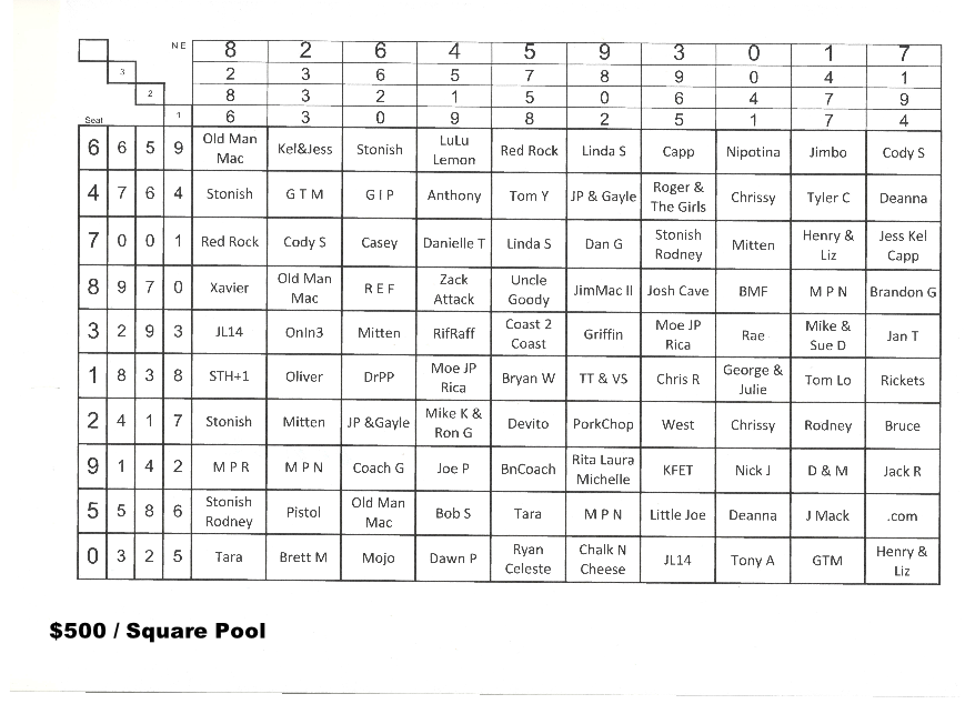 Mick's 1K Square Super Bowl Pool #2