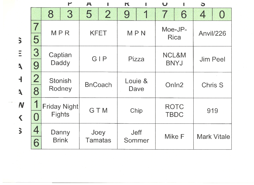 Mick's 1K Square Super Bowl Pool #2